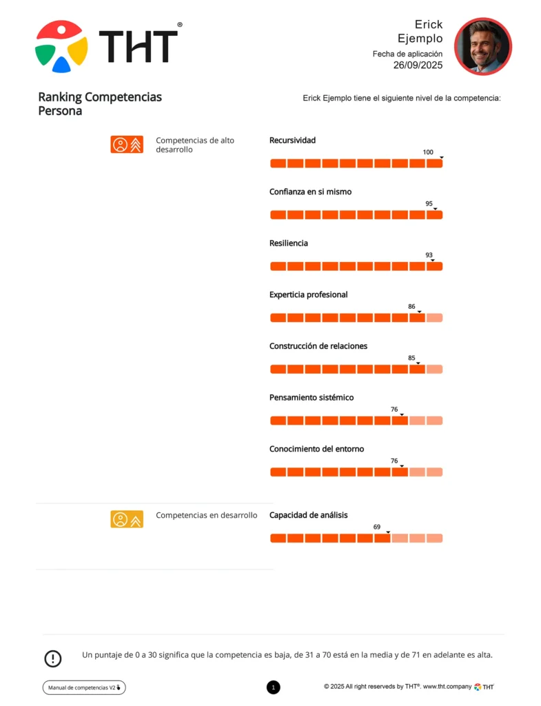 Este test identifica el ‘ser, saber y hacer’ que impulsa a cada persona a alcanzar resultados. Evalúa varias de las competencias más utilizadas en gestión de talento humano, abarcando competencias para perfiles operativos, tácticos y estratégicos.